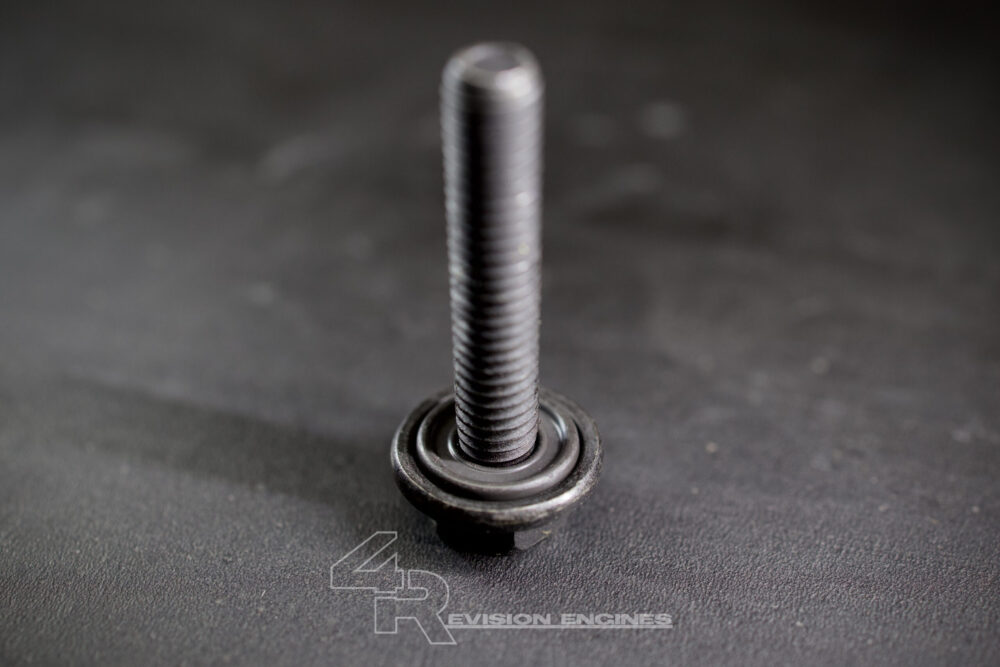 This bolt features an integrated seal under the bolt head, ensuring a reliable, leak-free connection between the bolt and the timing cover. Replacing this bolt is essential, as it is a known cause of an oil leak at the timing cover when overlooked.