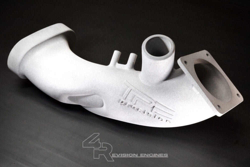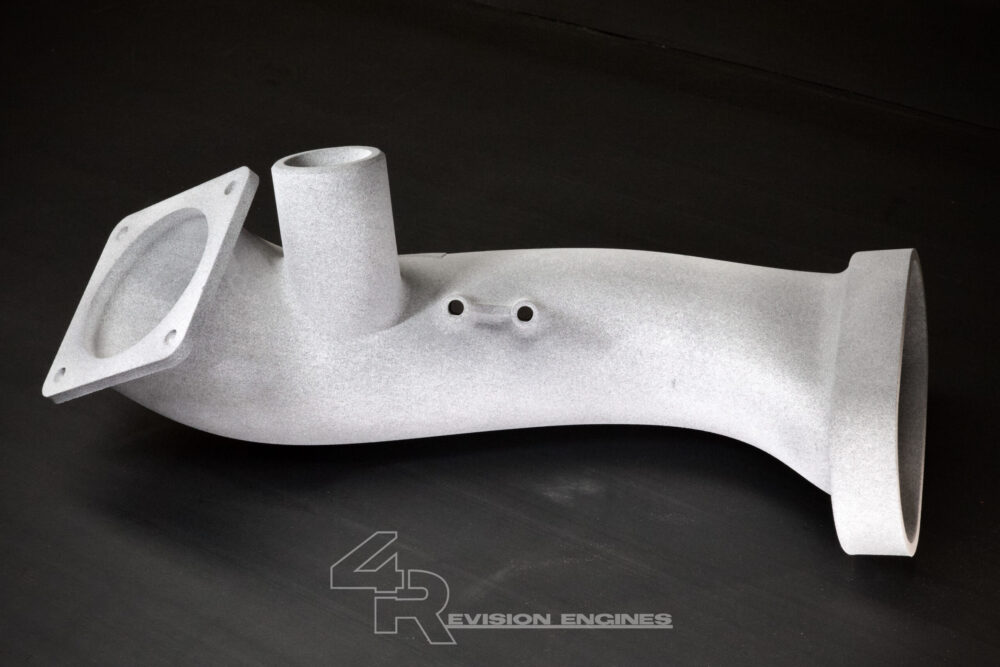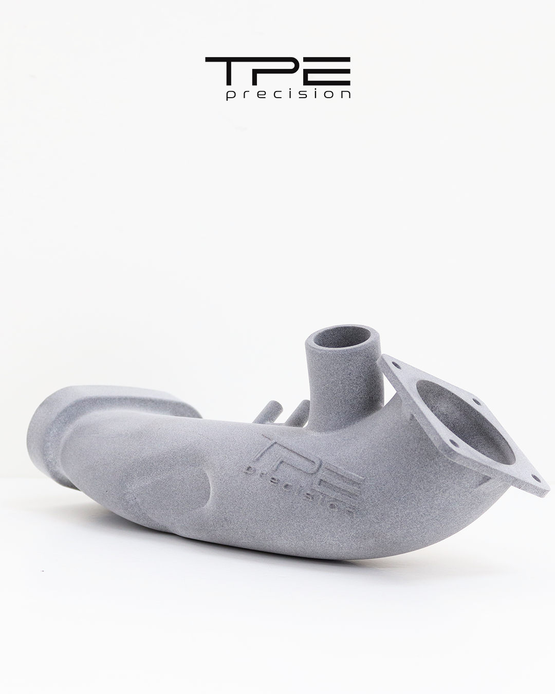 Unlike traditional cast or bent tubing, the TPE charge pipe is 3D printed using industrial-grade HP technology, allowing for an optimized internal shape and controlled wall thickness that cannot be achieved through conventional manufacturing.